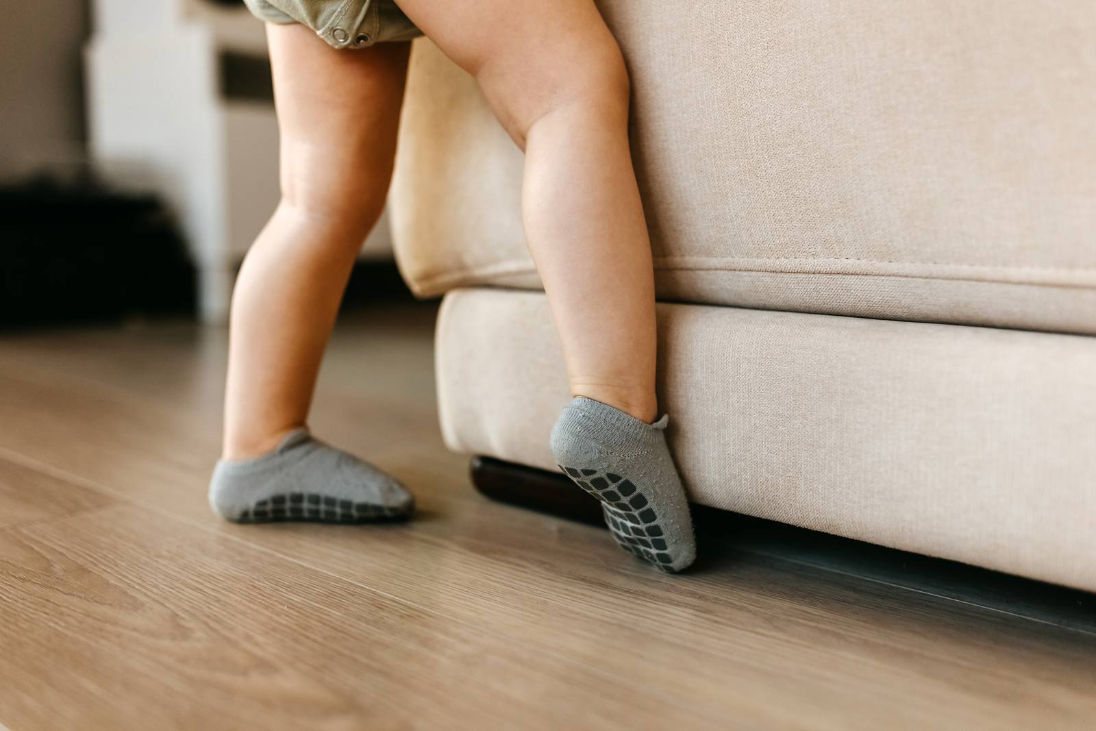 Un paio di calze antiscivolo sottili, che non limitino troppo la sensibilità dei piedini, potrà aiutare i bambini già mentre imparano a gattonare: i gommini che si trovano nella parte inferiore della calza aiuterà a non scivolare e a compiere quindi movimenti più coordinati. Quando possibile, gli esperti consigliano comunque di lasciare i bambini a piedi nudi, poiché questa condizione favorisce al meglio lo sviluppo motorio e la percezione del suolo.