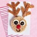 Prepara la mousse di prosciutto cotto, frullando insieme la ricotta con il prosciutto cotto, e poi fai riposare in frigorifero per una mezz’ora. Nel frattempo, taglia con un coltello affilato i bordi del pancarré, dai una forma circolare e tieni da parte gli avanzi per le decorazioni. Prepara i piatti: spalma la superficie di due tondi di pancarré con la crema di ricotta e prosciutto e copri con gli altri due. Fai gli occhi tagliando la fettina di mozzarella a rondelle, metti sopra un pezzo di oliva nera e fai un traforo a stella. Lava e taglia a metà i pomodorini e usali come naso. Fai le corna delle renne con i bordi tenuti da parte del pane da toast. Servine una al bimbo.